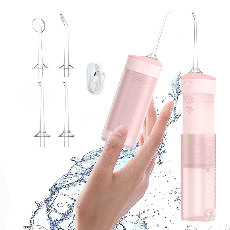 4. Flosser air mudah alih rumah kecil termasuk 2* tip jet standard, 1* hujung ortodontik, 1* hujung pembersihan lidah